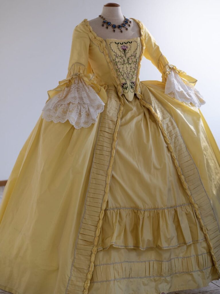 Dräkterna som visades upp kom från 1520-1890-tal. Alla dräkter är tillverkade av Emelie, även hattar och detaljer som väskor. Totalt visades 24 dräkter upp, för både vuxna och barn. Ett antal nya informationsskyltar hade också tagits fram till utställningen.