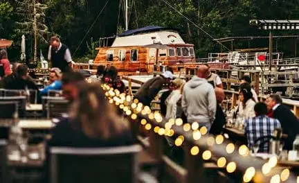 För den som är mat- eller fikasugen ligger Hjälmare Kanalcafé här. I idyllisk miljö och med en stor uteservering vid vattnet serverar de bland annat räkmackor, fikabröd, våfflor och Götlunda glass. På onsdagskvällar är det räkfrossa med livemusik!