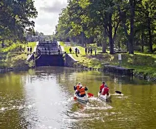 Hjälmare kanal bjuder på riktigt vacker paddling och det finns flera vindskydd och grillplatser vid kanalen som lämpar sig för ett stopp. Vill du inte lyfta kanoten förbi några slussar så rekommenderar vi att du startar vid Kvarnsjön. Här kan du hyra kanot och härifrån kan man paddla tio slussfria kilometer söderut till Hjälmarens inlopp. Då passerar du dessutom den spektakulära Bergskanalen, uppkallad efter de bergsmän från Skinnskatteberg som 1637 banade väg för vattnet genom berget.
