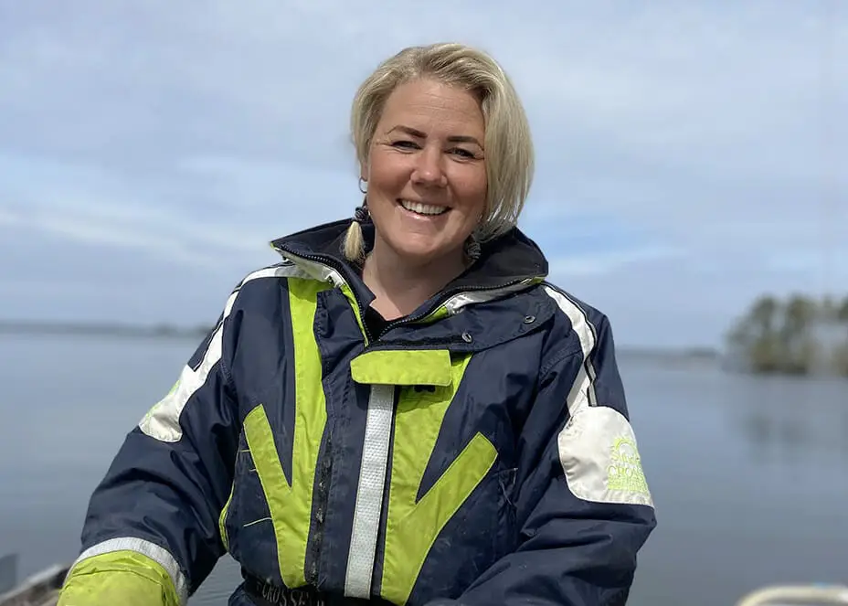 Hjälmarens FiskarAnna är sjuttonde generationens yrkesfiskare i Hjälmaren med ett hållbart fiske efter gös. Just nu är jag ensam i mitt företag och startade min enskilda firma 2010 men omorganiserade till AB senare. Mitt huvudsakliga fiske är efter gös och signalkräftor i hjälmaren men har även bifångst av abborre, lake, gädda, braxen mm. Jag arbetar aktivt med världens första MSC certifierade gösfiske som vi i hjälmaren fick igenom 2006. Jag arbetar för och önskar att även kommande generationer ska få möjligheten att leva av och med vår fina natur och fisk i Hjälmaren.